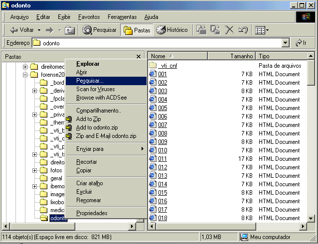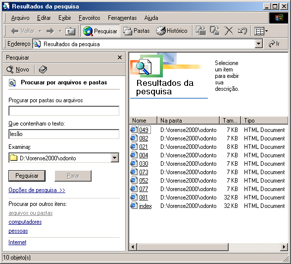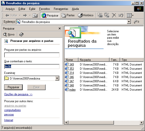 3) Clique nos arquivos encontrados para abri-los Veja outro exemplo de pesquisa na pasta medicina: