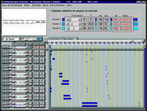 Os E.M. dos diversos dentes ocorrem de forma assíncrona, havendo uma relativa coincidência entre os lados direito e esquerdo. Cada grupo de dois dentes foi representado por uma barra de rolagem com nove posições, de 0 a 8, com a qual é possível inferir, aleatoriamente, E.M. a grupos de dentes. Quando selecionado um E.M. para determinado grupo de dentes, o número e o In.E.M. respectivos são exibidos numericamente nas colunas ao lado direito das barras de rolagem e, graficamente, por meio de barras coloridas. Os desenhos dos dentes também são automaticamente atualizados, exibindo o E.M. selecionado. Pode-se também inferir E.M. clicando-se diretamente em cada uma das figuras dentárias. O conjunto dos estágios de mineralização de uma criança de 6 anos de idade seria: (5, 6 - 5, 5 - 4, 5 - 3, 4 - 3, 3 - 6, 6 - 3, 3 - 0, 0). A representação gráfica dos In.E.M. utiliza 16 barras horizontais, coloridas de acordo com o E.M.. Cada barra corresponde graficamente ao In.E.M. para cada dois dentes heterolaterais. São 16 grupos de dentes e nove E.M., perfazendo um total de 144 intervalos, cada um com seu máximo e seu mínimo, 288 números. Os E.M. iguais entre os diversos grupos de dentes possuem a mesma cor, que pode ser alterada pelo usuário. O E.M. "8" é representado de forma peculiar, pois o período de tempo posterior a esta E.M. também satisfaz os critérios periciais. Um indivíduo com 20, 30 ou 50 anos já apresentou "fechamento apical". É possível visualizar todos os 144 In.E.M. no modo G.V.Id.E.M. Representando os quadrantes dentários direitos como a variável "x" e, a ordem a partir da linha média, como variável "y", teremos como possibilidades os conjuntos abaixo descritos. x E {10, 40} y E {1, 2, 3, 4, 5, 6, 7, 8} A combinação (x, y) apresenta, naturalmente, 16 possibilidades diferentes. Os lados direito e esquerdo são considerados semelhantes para os cálculos, isto é, estariam sempre no mesmo E.M..
