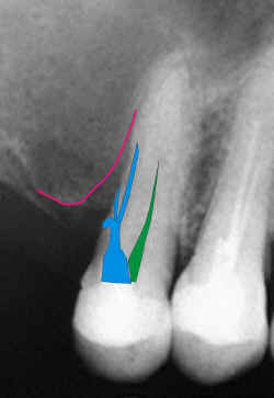 trepanação apical e conseqüente reação tissular.