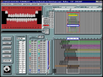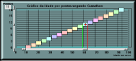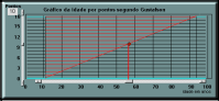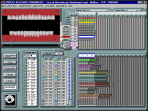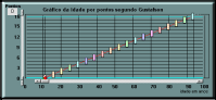 Quadro 2 - Legenda de cores dos dentes para a representação gráfica dos In.E. 5.3.8 - Variação dos Estados Eruptivos pela idade - V.E.E.Id.Inferindo-se uma idade de 15 anos e um P.E. em 50%, de acordo com a tabela de ERNESTINO, todos dos dentes estariam erupcionados, exceto os terceiros molares. Porém, basta alterar o P.E. para 75%, que os caninos, segundos pré-molares, segundos e terceiros molares não estariam erupcionados. Portanto, para Id.E. = 13 anos, do ponto de vista eruptivo, segundo ERNESTINO, apenas os dentes incisivos e primeiros molares estariam certamente erupcionados, assim como somente os terceiros molares estariam certamente não erupcionados. Em outras palavras, para a idade de 13 anos, temos 16 dentes com a variável erupção definida, e outros 16 como variável indefinida. Os cálculos são realizados sem considerar eventual correlação entre dentes, como por exemplo, a tendência de todos apresentarem conjuntamente precocidade, normalidade ou retardo eruptivo. 5.3.9 - Gráfico da variação dos Estados Eruptivos pela Idade -G.V.E.E.Id.Este índice de variação de erupção depende da idade, podendo-se construir um gráfico para cada tabela eruptiva, inclusive para as acrescentadas ao banco de dados. As tabelas eruptivas podem ter G.V.E.E.Id. comparados entre si. Pode-se comparar da mais variadas formas gráficas, dependendo de quantas tabelas se dispuser no banco de dados. As oito últimas tabelas e respectivas cores utilizadas estarão presentes como legenda. Quando alguma tabela que não apresente valores válidos para os terceiros molares é carregada, automaticamente estes dentes se tornam desativados do SISCRO. A plotagem do gráfico pode ser ajustada verticalmente em sua origem Y0 e na porcentagem em relação à área disponível Y%, de forma a permitir várias combinações como quatro gráficos simultâneos de 25% de amplitude vertical, dois de 25% e um de 50%, um de 75% e outro de 25%, dois de igual amplitude, ou apenas um, ocupando toda a área de plotagem. O controle horizontal é realizado na origem da marcação do gráfico X0, que varia em unidade de 0 a 12 meses e serve para plotagens intercaladas. A freqüência na idade para a marcação dos pontos pode ser estipulada em meses inteiros de 1 a 12, serve para uma construção menos densa, mais rápida ou intercalada, variando-se a origem X0. A plotagem em si pode ser realizada, utilizando-se pontos, barras verticais ou círculos de diâmetros definidos pelo usuário. As cores de cada plotagem também podem ser escolhidas pelo usuário, através da combinação de três cores básicas aditivas: vermelho, verde e ciano. Este recurso de cor, conhecido como "RGB", permite individualizar graficamente cada tabela ou grupos de dentes. A comparação entre as diversas tabelas pode ser realizada de forma numérica e gráfica, utilizando-se o comparador, uma segunda tabela em uma base de dados, diferente das tabelas de trabalho. Pode-se copiar qualquer tabela de trabalho para o comparador, ou introduzir novas tabelas, através do banco de dados. A representação iconográfica da variação dos estados eruptivos para a idade de 13 anos, segundo "ERNESTINO", considerando apenas a seqüência pré-determinada é de quatro figuras. Caso a seqüência não seja rígida, na situação real, teríamos 65.536 possibilidades. O cálculo da Id.Est. por determinada tabela é a resultante da união entre os In.PréE./In.PósE. para cada um dos dentes utilizados.