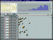 Os E.M. dos diversos dentes ocorrem de forma assíncrona, havendo uma relativa coincidência entre os lados direito e esquerdo. Cada grupo de dois dentes foi representado por uma barra de rolagem com nove posições, de 0 a 8, com a qual é possível inferir, aleatoriamente, E.M. a grupos de dentes. Quando selecionado um E.M. para determinado grupo de dentes, o número e o In.E.M. respectivos são exibidos numericamente nas colunas ao lado direito das barras de rolagem e, graficamente, por meio de barras coloridas. Os desenhos dos dentes também são automaticamente atualizados, exibindo o E.M. selecionado. Pode-se também inferir E.M. clicando-se diretamente em cada uma das figuras dentárias. O conjunto dos estágios de mineralização de uma criança de 6 anos de idade seria: (5, 6 - 5, 5 - 4, 5 - 3, 4 - 3, 3 - 6, 6 - 3, 3 - 0, 0). A representação gráfica dos In.E.M. utiliza 16 barras horizontais, coloridas de acordo com o E.M.. Cada barra corresponde graficamente ao In.E.M. para cada dois dentes heterolaterais. São 16 grupos de dentes e nove E.M., perfazendo um total de 144 intervalos, cada um com seu máximo e seu mínimo, 288 números. Os E.M. iguais entre os diversos grupos de dentes possuem a mesma cor, que pode ser alterada pelo usuário. O E.M. "8" é representado de forma peculiar, pois o período de tempo posterior a esta E.M. também satisfaz os critérios periciais. Um indivíduo com 20, 30 ou 50 anos já apresentou "fechamento apical". É possível visualizar todos os 144 In.E.M. no modo G.V.Id.E.M. Representando os quadrantes dentários direitos como a variável "x" e, a ordem a partir da linha média, como variável "y", teremos como possibilidades os conjuntos abaixo descritos. x E {10, 40} y E {1, 2, 3, 4, 5, 6, 7, 8} A combinação (x, y) apresenta, naturalmente, 16 possibilidades diferentes. Os lados direito e esquerdo são considerados semelhantes para os cálculos, isto é, estariam sempre no mesmo E.M..